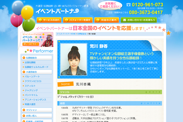・ 大道芸人・似顔絵師・マジシャン・ケータリングカー等のイベントへの派遣出張サービスサイト