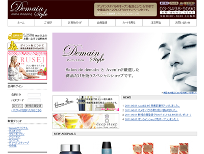『Demain Style』(http://www.demainstyle.jp/)が取り扱う商品は、世界中のエステサロンで利用されている、デパートや百貨店では購入する事の出来ないエステサロン専売品です。