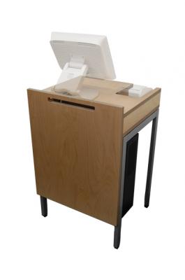 レシートプリンターやパソコンをきちんと専用エリアに格納でき、端末としてのまとまり感があります。