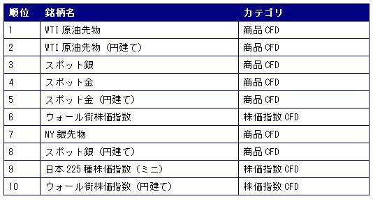 2011年5月度CFD取引額ランキングは次の通りです。
