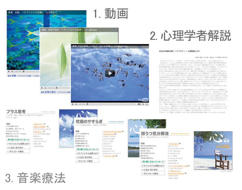 さらには、それぞれの心理学者が書いたメッセージも役立ち、音楽療法CDを視聴できる。