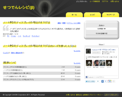 そこで、せつでんレシピでは、体系的にデータベース化できる機能を提供し、節電に関するノウハウをユーザーが登録・活用できるようにいたしました。また、他のユーザーが登録情報をブラッシュアップしていくことで、データベースの質を高めていくことができるようになっています。