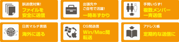 外部送信機能、複数ファイルアップロード機能、メール通知機能