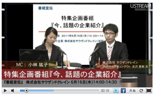 この度サウザンドクレインは、「いま話題の企業紹介」と題して業績を伸ばし続ける会社としてユーストリームに出演いたします。