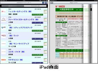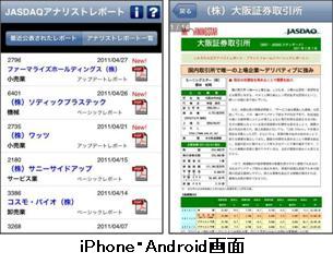 iPhone,iPad,Android端末に最適化した画面構成で,JASDAQアナリストレポートを閲覧することが可能です。