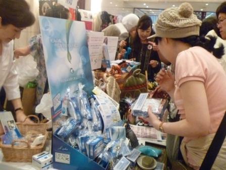 そんな死海製品を取り扱う株式会社シーサイドは、6月11日土曜日、オマーン大使館において、日本復興支援のためのチャリティーバザー(主催:駐日アラブ大使夫人の会)のヨルダン大使館ブースにおいてDefine Care(ディファインケア)シリーズの「ミネラルソルトソープ」と「マッドソープ」を販売。約160個用意した石けんが完売。売上の一部をヨルダン大使館を通して東日本復興支援のための寄付を行った。