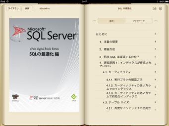 eBookProでは、電子書籍ビジネスの企画から各種電子書籍の制作まで、幅広い活動を行っています。「ePub digital book Series」では、日本マイクロソフトからコンテンツ提供を受け、Microsoft SQL Serverの技術書を電子書籍の世界標準フォーマット「EPUB」を用い電子書籍化し、2011年5月より無料で提供しています。今回は、新刊として『SQLの最適化 編』をリリースしました。EPUB化によりiPad/iPhone、SONY Readerなどの各種モバイル端末においても読みやすい電子書籍が実現しています。