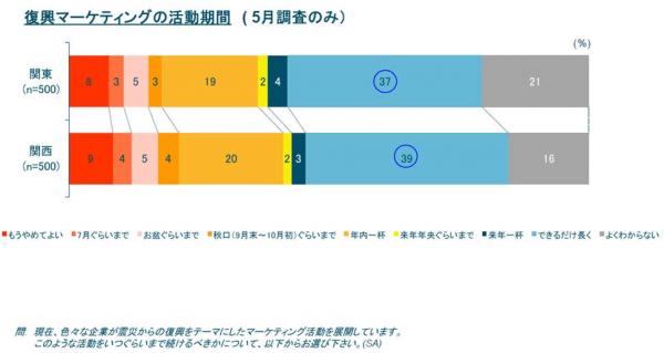 ◆「復興に関するマーケティング」は「年内」「できるだけ長く」を期待する人が多く、少なくとも年末までの実施が支持されると思われる。<図5>