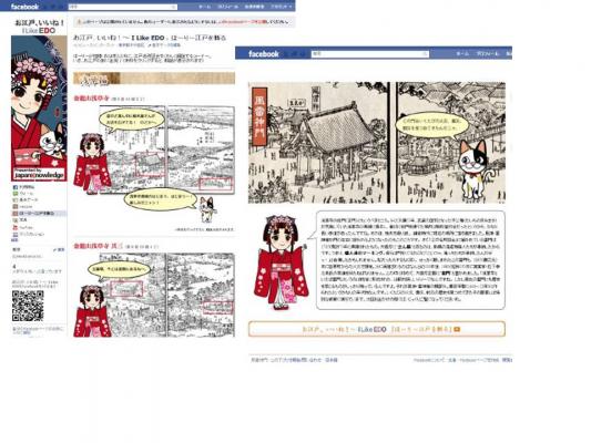 江戸時代後期の観光ガイドとして知られる「江戸名所図会」。このたび小学館グループの(株)ネットアドバンスが運営するインターネット辞書・事典検索サイト「ジャパンナレッジ」でほかのコンテンツと串刺し検索が可能になりました。それを記念して、世界最大のソーシャル・ネットワーキング・サービス「Facebook」上で、「江戸名所図会」を軸にしたページを公開しました。