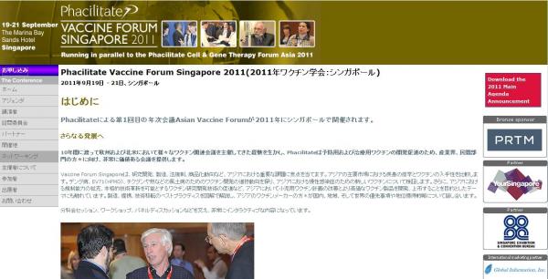 学会:「Phacilitate Vaccine Forum Singapore 2011 (2011年ワクチン学会:シンガポール)」