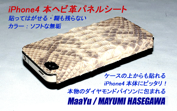 今回発表の iPhone4ボディ・ピッタリ本蛇革無垢パネルシートは、貼ってはがせる