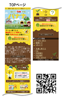 TOPページではメインの育成ゲームと勲章をGETするためのミニゲーム関係を説明する必要があるため、容量内で可能な限り分かりやすく図解しました。また、ユーザーに何度でもゲームを楽しんでいただけるよう、バナナの成長が楽しくなるようなデザインにしています。