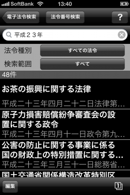 ● 無償で提供されている iPhone 版『電子法令検索』が必要です。