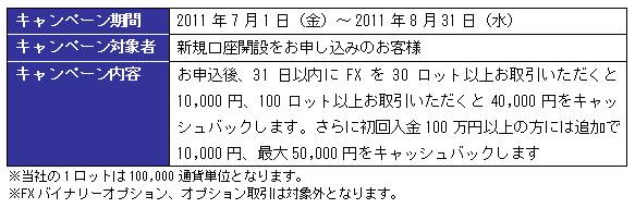 IGマーケッツ証券株式会社は、現在実施中の「最大5万円がもらえるFXキャッシュバックキャンペーン」の期間をご好評につき延長いたしました。キャンペーン期間中、新規に口座開設後お取引頂いたお客様を対象に、最大50,000円をキャッシュバックいたします。