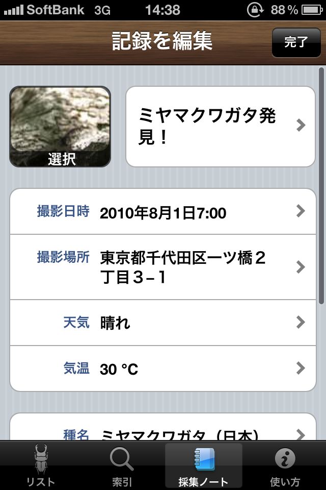 昆虫採集の記録ツールとして使うことができます。