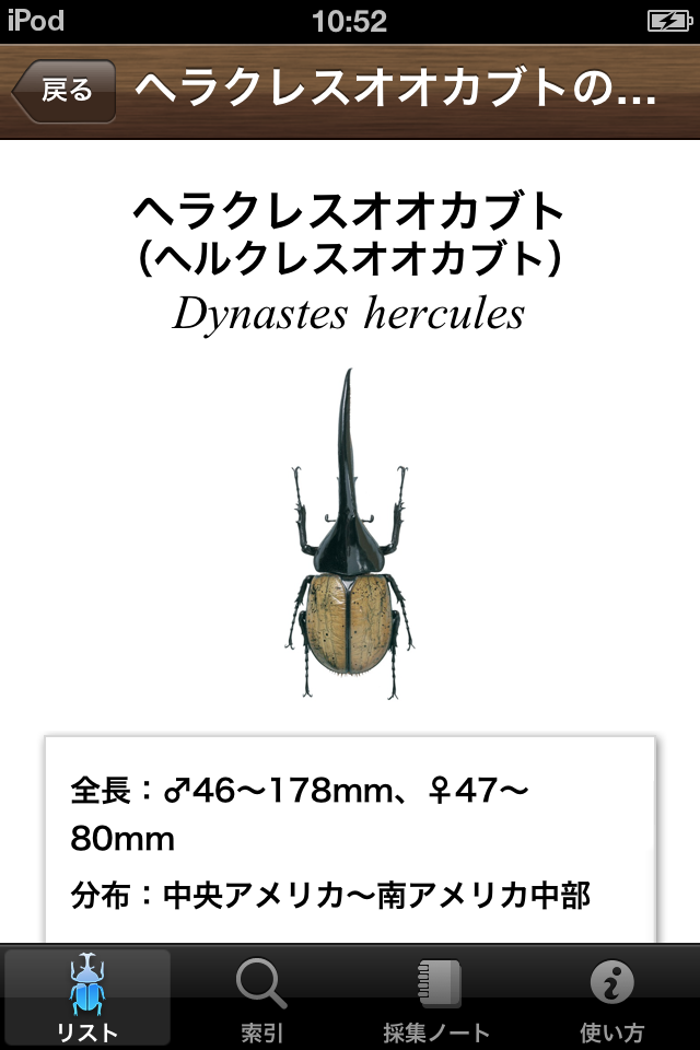 『図鑑NEO for iPhone 世界のカブトムシ』