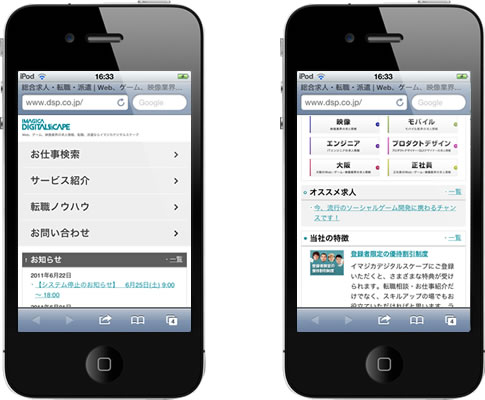 株式会社イマジカデジタルスケープ (本社:東京都渋谷区 代表取締役社長:藤川幸廣 URL: http://corp.dsp.co.jp/ 以下:当社)は、本日7月1日より、当社の総合求人情報サイト(http://www.dsp.co.jp/)のスマートフォン版を本日オープンいたしました。