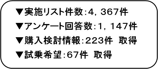そのうち購入検討は223件、試乗希望67件取得