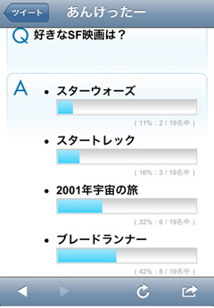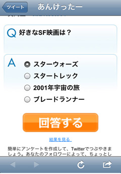1. 気軽、簡単にアンケートが作成でき、ツイッターのタイムライン上にポストされます。