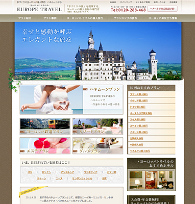 今回のTOPページリニューアルでは、ハネムーンプランを中心に、ヨーロッパ鉄道、リゾート、エステ、グルメといった人気のテーマを集めた新たなプランが増え、中央に大きく掲載されています。