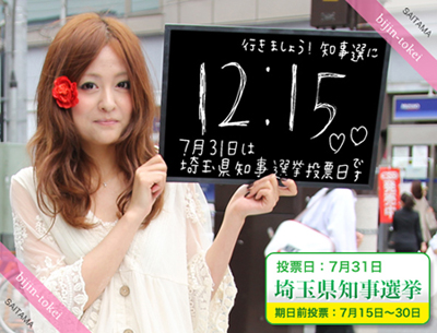 インターネットメディア運営を行う株式会社サイリンク(本社:さいたま市浦和区、代表取締役:荻島正拡、URL:http://cylink.jp/)は、同社が運営するウェブサイト「美人時計埼玉版(http://www.bijint.com/saitama/)」において、埼玉県選挙管理委員会とタイアップし、7月31日(日)に行われる埼玉県知事選挙のPRを行います。