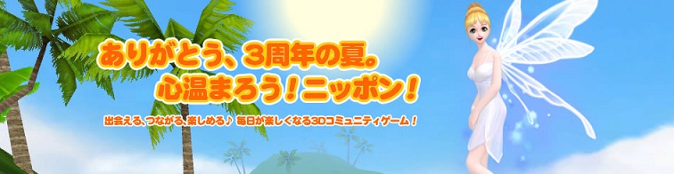 グレイトフルデイズ株式会社(東京都渋谷区・代表取締役:村上タクオ)は、当社が開発・運営する3Dコミュニティサービス「MILU(ミル)」(http://www.milu.jp/)では、本日、2011年7月7日(木)にサービス開始3周年を迎えることができました。なお、2011年7月6日(水)に実施の定期メンテナンスにおいてアップデートを行いました。