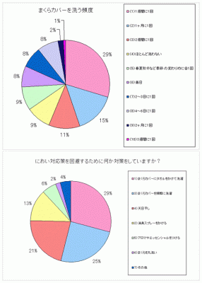 節電が重要視されているこの時期、61%の方がまくらのにおいを気にしていて、タオルをかけて洗濯するなどの対応策を行っています。