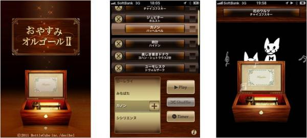 株式会社アイ・エム・ジェイ(JASDAQ 4305)グループの株式会社ボトルキューブ(本社:東京都目黒区、代表取締役社長:川口達也)は、App Storeヘルスケア / フィットネス有料ランキング第一位を記録した人気iPhoneアプリシリーズの新作「おやすみオルゴール2」を2011年7月15日より、App Storeにて配信開始いたします。