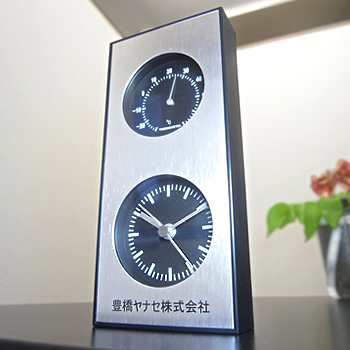 愛知県の高級輸入車ディーラーが、新車発表会のプレミアムノベルティとして制作し来場者に配布したとのこと。デザイン・サイズともに存在感があり、室温を計れるエコグッズとして実用的な室温計付きクロックを選定。尚、HPでは多数の中古車も取り扱い中。