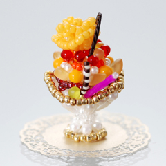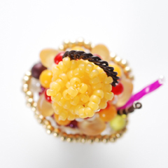 マンゴーをメインに据えたパルフェを忠実に再現したビーズクラフトです。