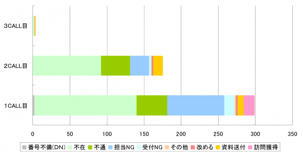 またコール回数毎のステータスをみると、1コールでのコールの方が多少ではあるが効率的に見える。