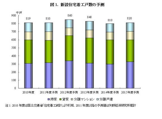 ◆ 2011年度の新設住宅着工戸数は81万戸を予測、2012年度から本格復興へ
