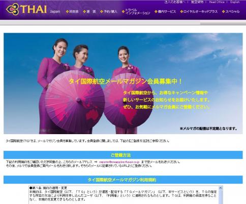 タイ国際航空様は、今後積極的に自社会員組織を拡大し、会員とのリレーションを強化してサービス利用促進を図ることを目的に、2011年7月21日にWebサイト上でメルマガ会員募集をスタートいたしました。