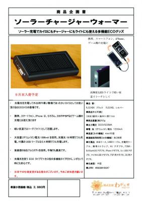 としてもチャージャーとしてもライトとしても使える多機能ECOグッズ『ソーラーチャージャーウォーマー』の9月発売