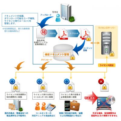 また、「データの暗号化」/「データの復号」/「利用権限(ライセンス)管理」/「画面複製防止」などのSDK群の提供、及び開発支援を行う事で、お客様の既存システムに対してDRM機能をアドオン提供致します。