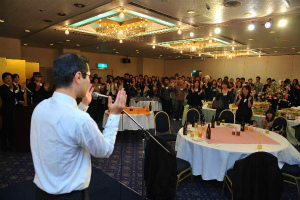 笑屋の同窓会サービスは、2009年1月に開始した同窓会幹事代行サービスと同窓会クローズドSNS(同窓生しか入れないクローズドコミュニティーサイト)を組み合わせたビジネスモデルであり、同窓会幹事が手間やリスクを抱えずに平均100名規模の大規模な同窓会を開催できるサービスです。エリアパートナー制度を設けており全国での対応が可能となっています。