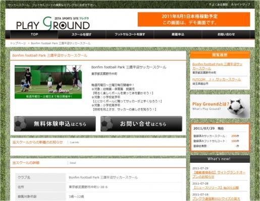 オンリーワン指導練成会(学習塾)を神奈川県内で運営する株式会社E-LABO(本社:東京都千代田区、代表:野村 元)は、全国に数千あるとされる、サッカースクールを検索できるポータルサイト「Play Ground(通称プレグラ)http://p-ground.com/」を、2011年8月1日にオープンしました。