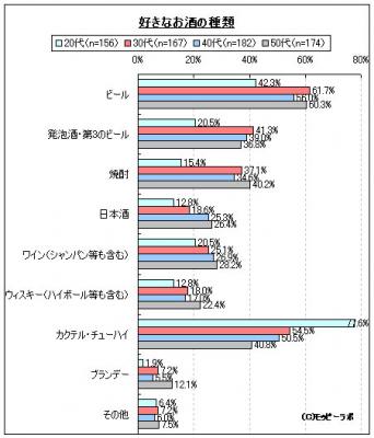 ■20代の「好きなお酒」、「カクテル・チューハイ」が「ビール」に圧勝