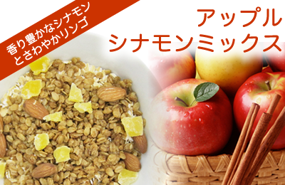 オーツ麦、メープルシロップ、キャノーラ油、アーモンド、リンゴ、全粒粉、シナモン、バニラ香料