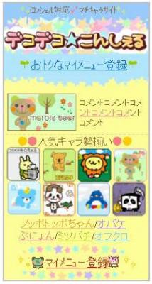 「デコデコ★こんしぇる」は、当社が提供するデコメール(R)総合サイト『デコデコメール』、デコメアニメ(R)総合サイト『デコデコ★アニメ』をはじめとする“デコデコ★” シリーズの姉妹サイトの「マチキャラ」対応iモード公式サイトです。
