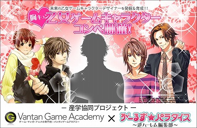 バンタンゲームアカデミーの学生を対象に、Yahoo!モバゲー、およびモバゲー、ハンゲームで好評サービス中の女性向けオンラインアドベンチャーゲーム『がーるず★パラダイス ~逆ハーレム編集部~』の新キャラクターを募集する「胸キュン乙女ゲームキャラクターコンペ」を、2011年4月より開催。この度、キャラクターデザイナー専攻の渡部 裕喜さんがグランプリを受賞し、ゲーム内への実装が決定しました。