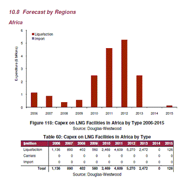 世界のLNG消費量は回復軌道に乗ったと見られています。LNG施設への設備投資は2011-2015年に合計で930億米ドルに達すると予測されています。Douglas-Westwoodでは環太平洋地域が、2015年には最大で年間260億米ドルにもなる全世界の投資額の大半を占めると予想しています。