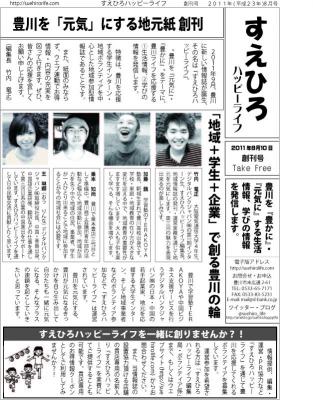 豊川の地元紙、『すえひろハッピーライフ』の創刊・発行・運営はデジタルバンクジャパン株式会社(本社:愛知県豊川市、社長:王 琳娜)の第一期インターシップ生を中心に同社および地元商工会議所の青年部会員など地域と縁の深いボランティアの参加によって行われる。初回発行は約20000部で2年後50000部を目指す。