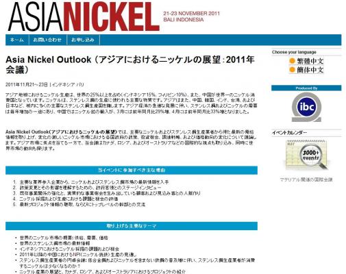 会議:「Asia Nickel Outlook (アジアにおけるニッケルの展望:2011年会議)」