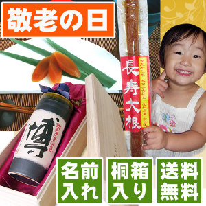<敬老の日 プレゼントの名入れ焼酎と長寿大根のセット紹介>