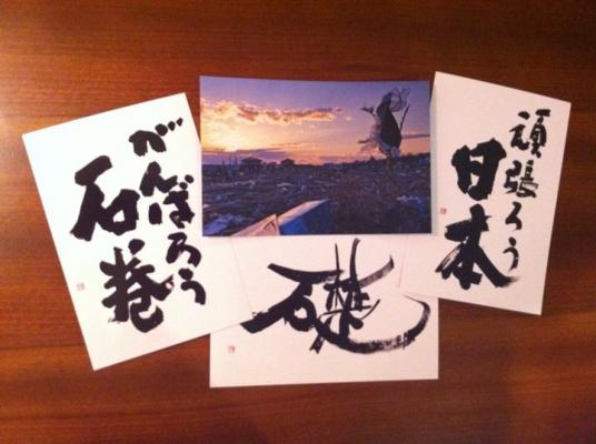 特定非営利活動法人「いしのまき環境ネット」が書道家・千葉蒼玄さんとコラボレーションし、ポストカードやTシャツの販売を通して石巻の復興を支援するプロジェクトです。プロジェクト名の『礎(いしずえ)』には、「地震にも津波にもそして、これから来るであろうどんな困難にも負けないで『礎』を築いていきたい」というメッセージが込められています。発起人は、石巻市在住の佐々木恭子さんです。佐々木さんは、東日本大震災で父を亡くし、その2日後に病気で母を亡くされた悲しみの中、ロンドンの友人からチャリティーで集めた支援金を贈られたことをきっかけに、復興に向けて友人の川村久美さんとともに「礎(いしずえ)プロジェクト」の活動を開始いたしました。佐々木さんがポストカードを依頼した書道家の千葉蒼玄さんも同じ石巻市出身で、自らも被災し、多くの作品が津波に流されてしまいました。今回のプロジェクトを快諾していただいた千葉さんは、楽天イーグルスのポスターを手がけるなど活躍中の書道家です。