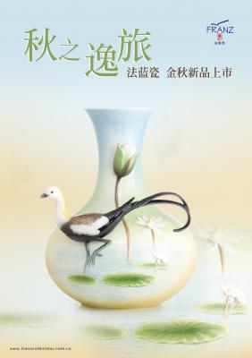 フランツの製品はアールヌーヴォーの流れるようなデザインが特徴で、特製釉薬(ゆうやく)を使った下絵技術と、レリーフと彫刻を融合した精緻な技術で、立体造形を作り上げています。また、花や蝶、動物等の自然をモチーフにしており、とりわけ「蝶舞シーリズ」は、2002年ニューヨーク・インターナショナル・ギフト・フェアでベストギフト賞を受賞し、名実共に高い評価を得ており、現在、世界各地の高級百貨店のショーウィンドウを飾り、国内外を問わず注目されています。