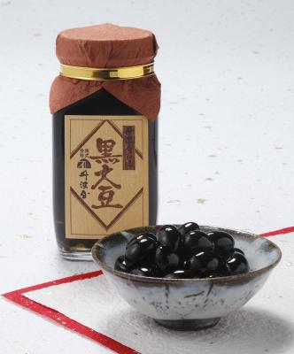 素材の黒大豆は、兵庫県産のみを限定使用。豊かな自然が育んだ大地の恵みです。「黒大豆甘煮」には、その中でも特に質の優れた大粒の豆だけを用いました。収穫から商品の完成まで、三度に渡る厳しい選別を経た選りすぐりの商品です。さらに今年度は新たな加工法を開発し、発色目的の添加物を一切使わずに、より黒く艶やかに仕上げられるようになりました。