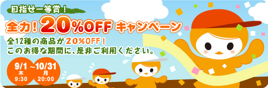 『目指せ一等賞!全力!20%OFFキャンペーン』について