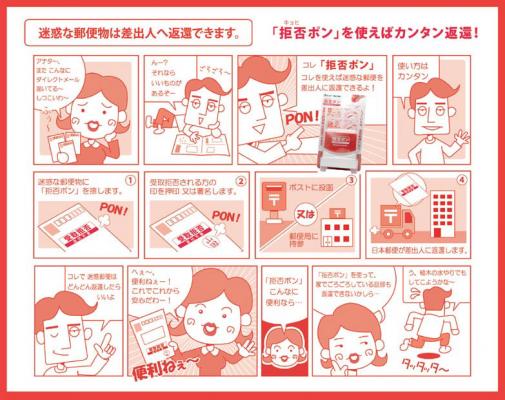 ※日本郵便が配達した郵便物等でないものは、「拒否ポン」を使用して差出人に返還することはできません。